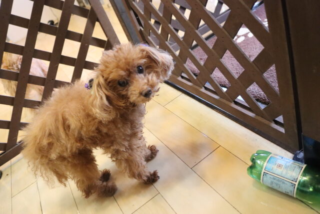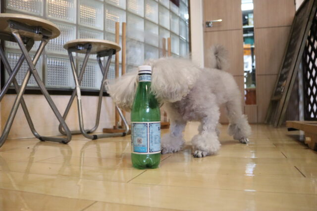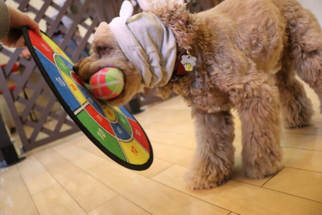 ペットボトル倒しでは1回でペットボトルを倒すことが出来ると少しビックリした表情のマロンくんでした♪