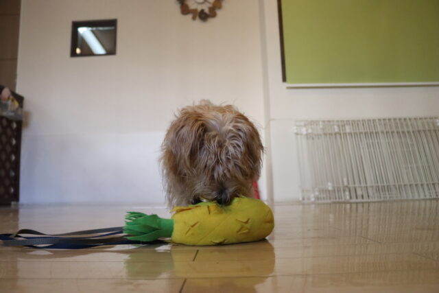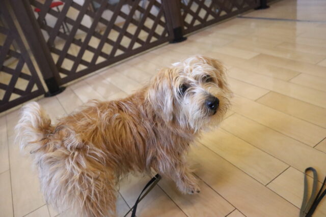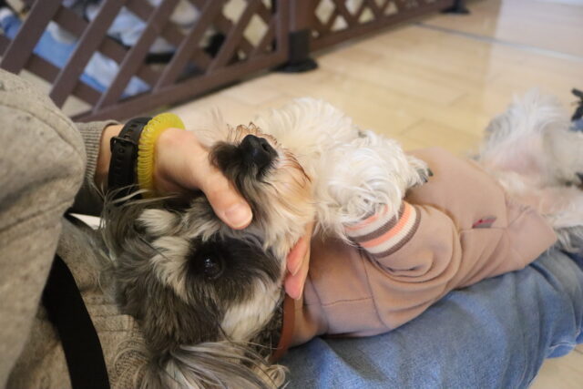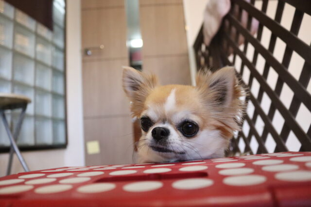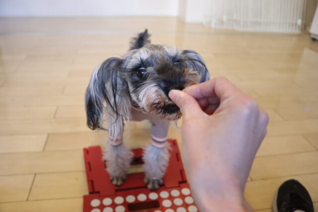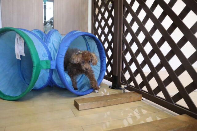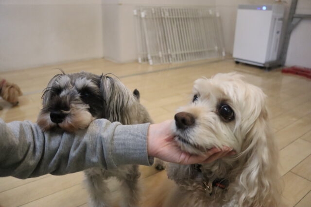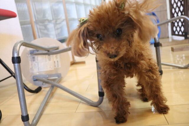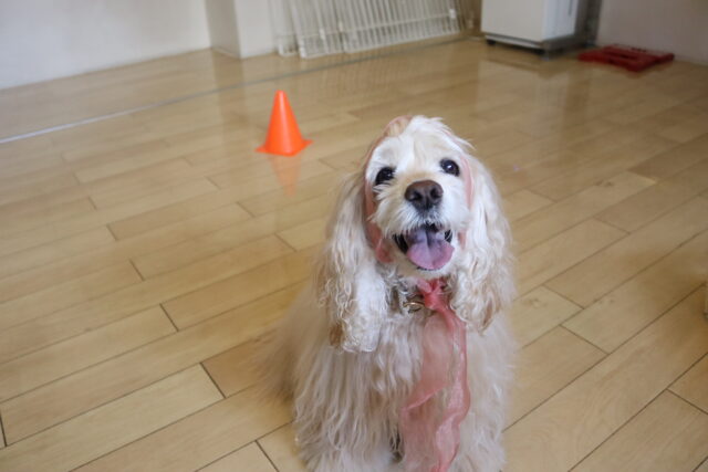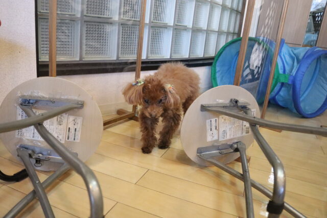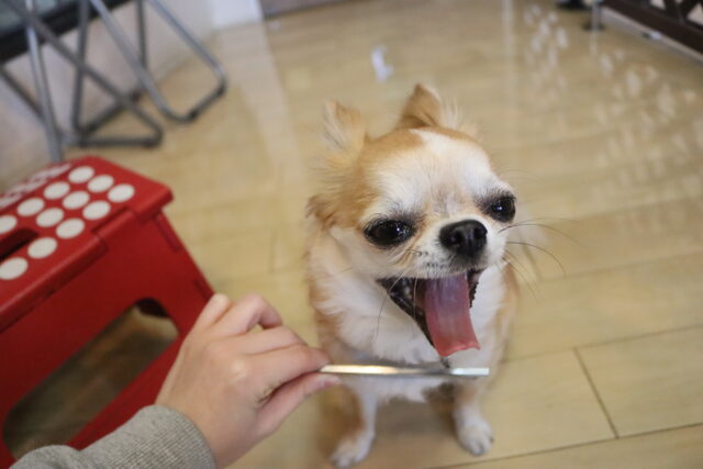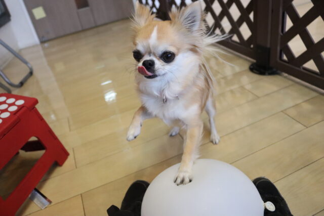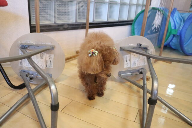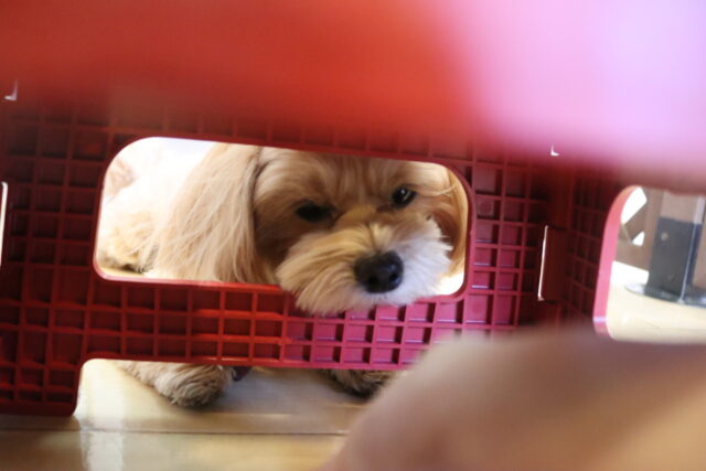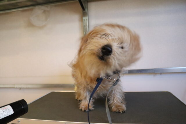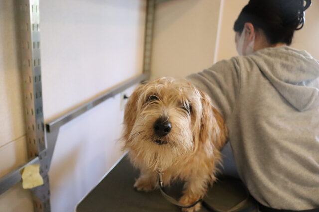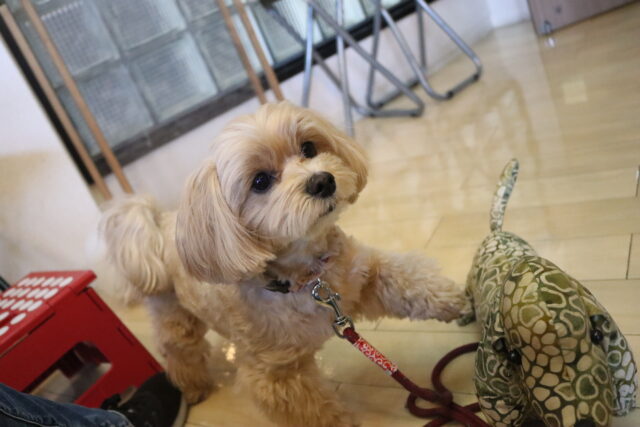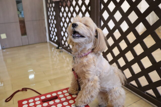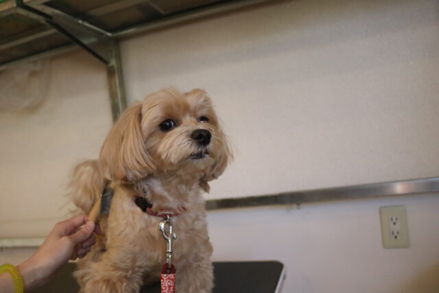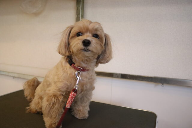 高い台の上に乗ることは平気そうだったのでトリミングサロンで行う作業を行ってみたところ、そちらは苦手そうな場面があったので少しずつ慣れていきたいね♪