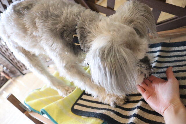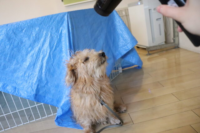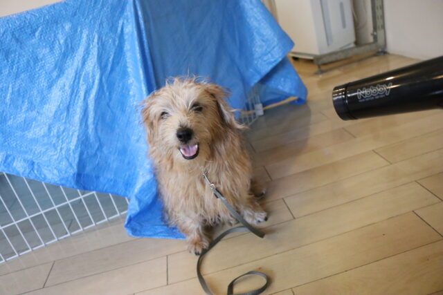 ドライヤー慣れも!ブォーっと風を浴びるオスカーくん、