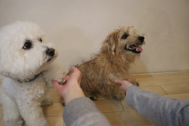 甜ちゃんに協力してもらい犬慣れの練習も🌟
