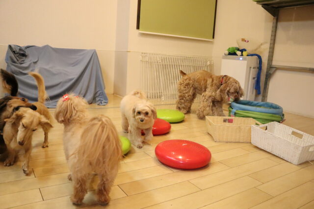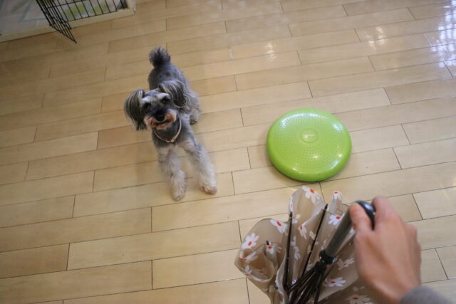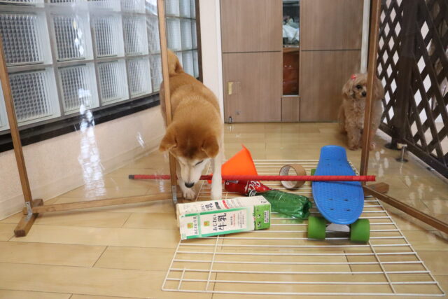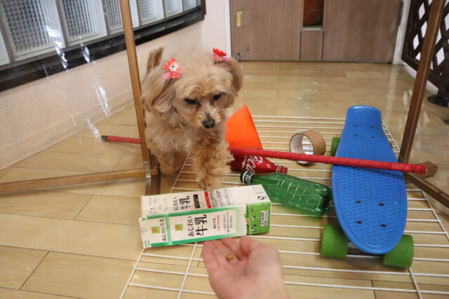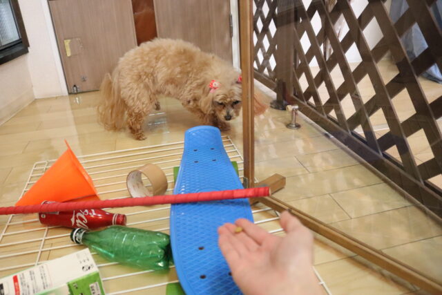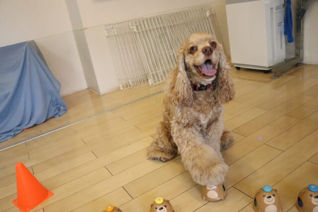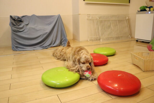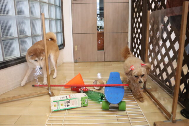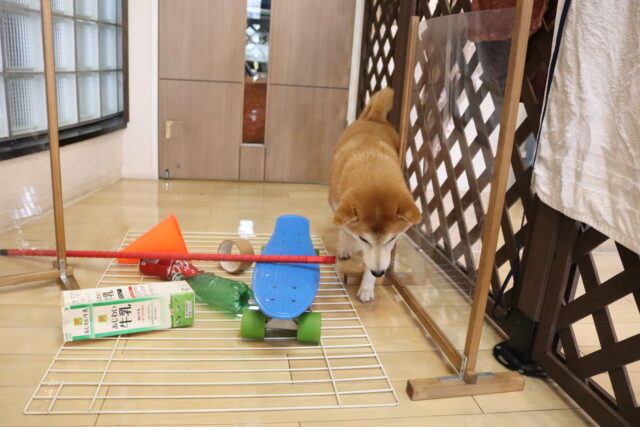 物が置いてあるサークルを渡って物慣れに挑戦しました!