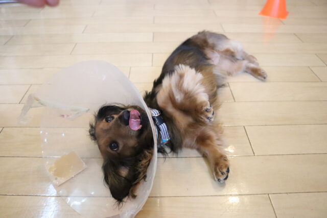 テトラくん、らんくん、小春ちゃん、ルルちゃん、麦ちゃんはエリザベスカラーで物慣れを行っています!