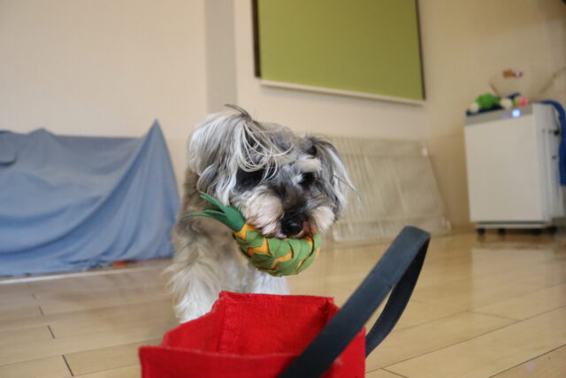 でも咥えようと一生懸命挑むこむぎちゃん!持って来られるようにまた練習しようね🤗