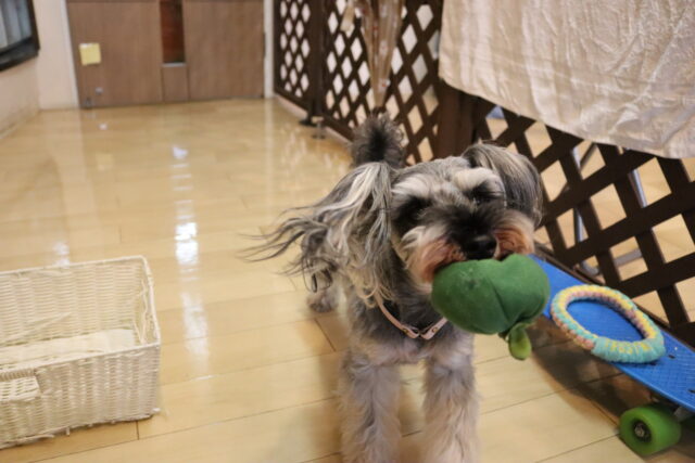 少し硬めのおもちゃでも挑戦すると、こちらは少し苦戦中💦