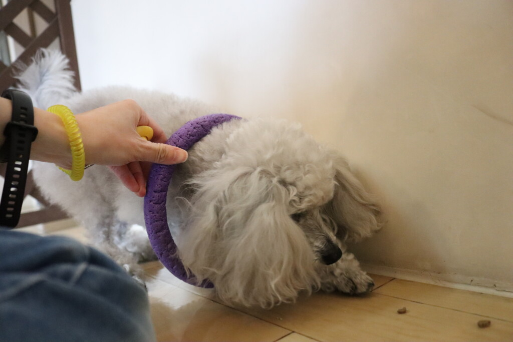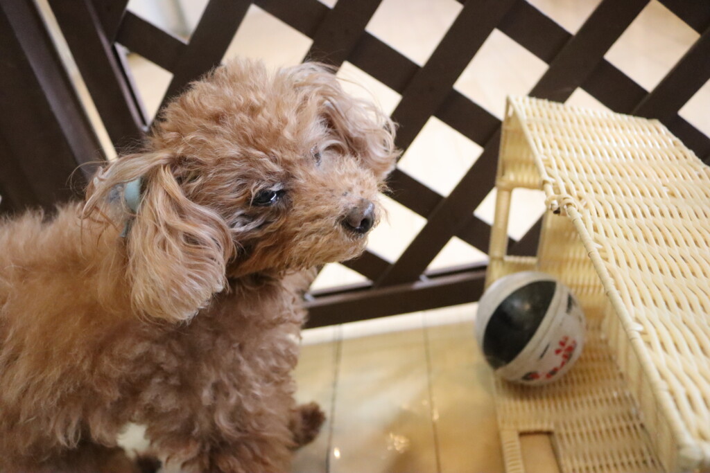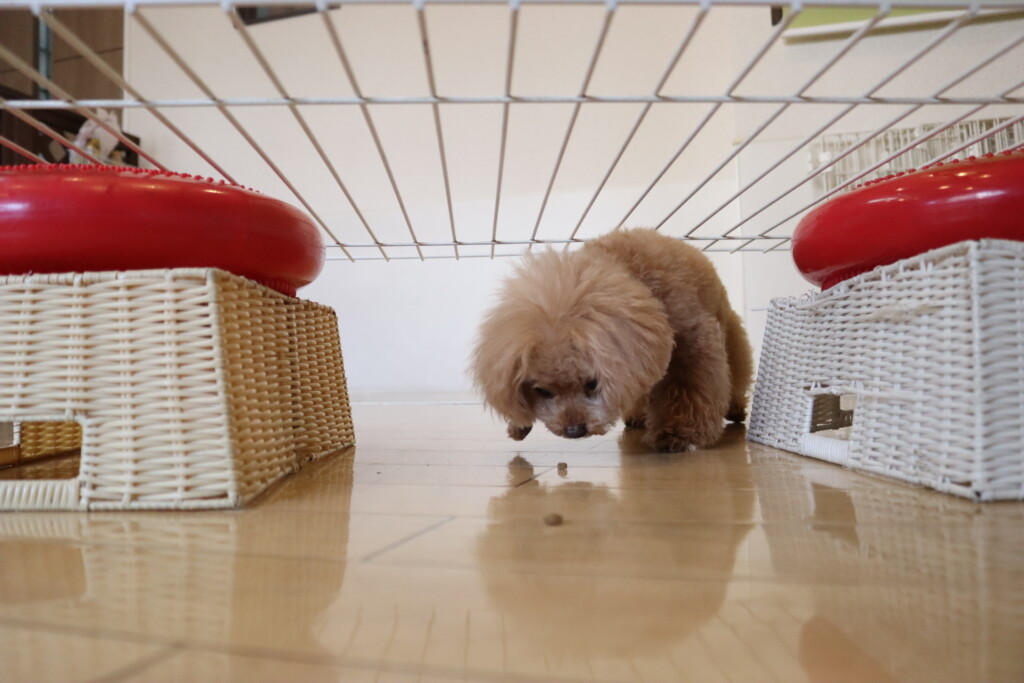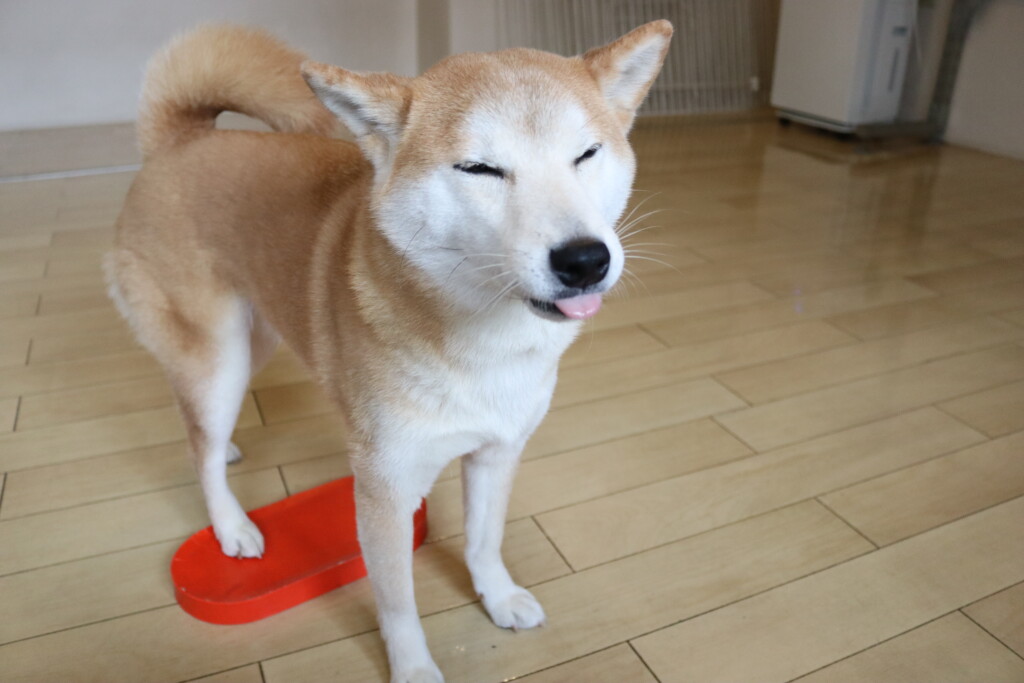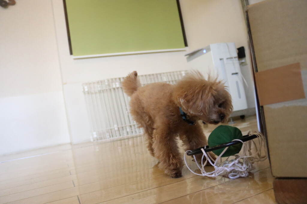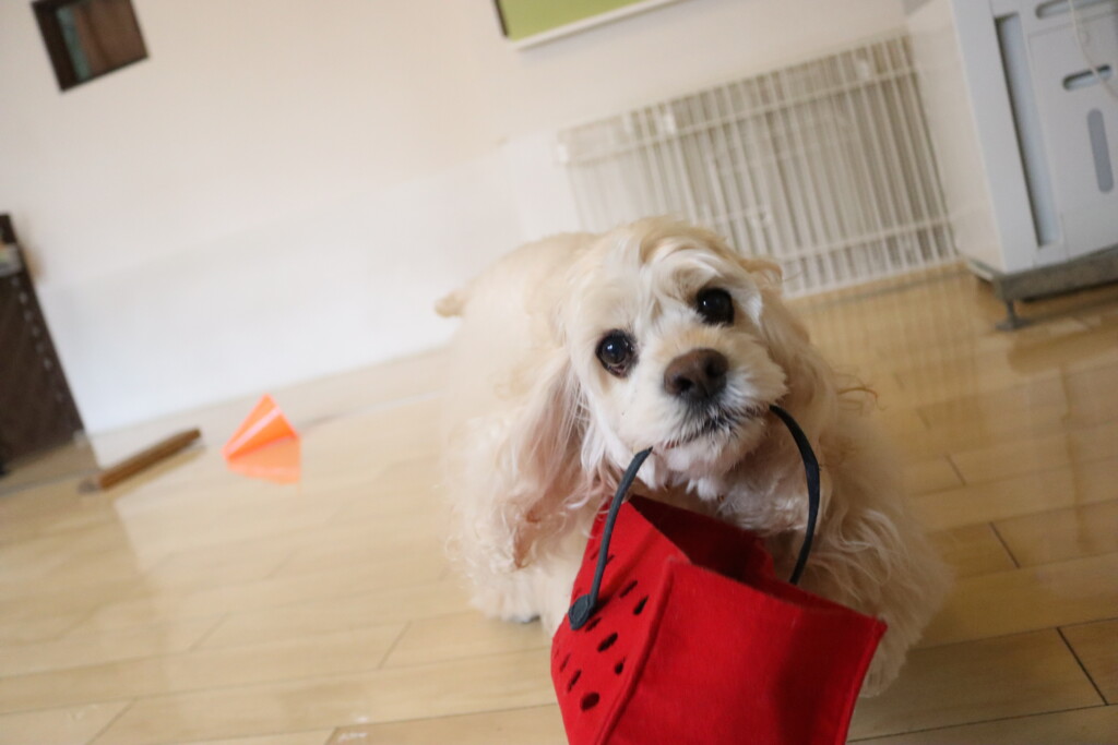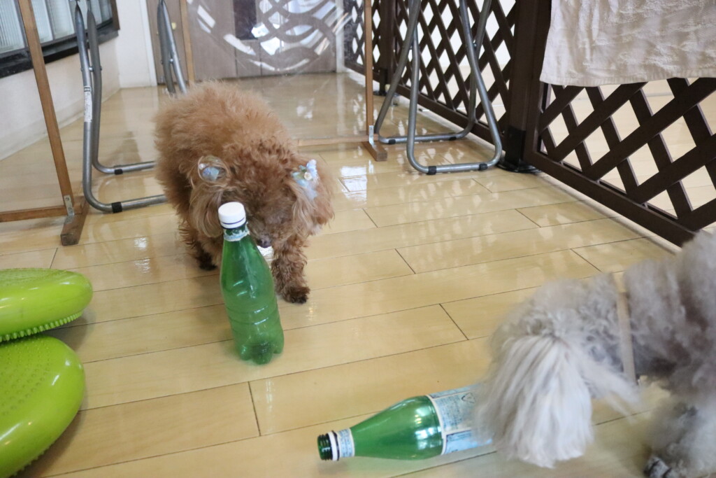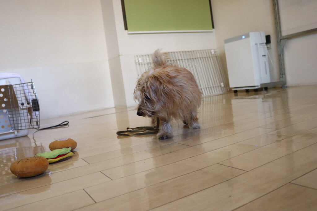 金ちゃんはオモチャを咥えてディスク回り!
