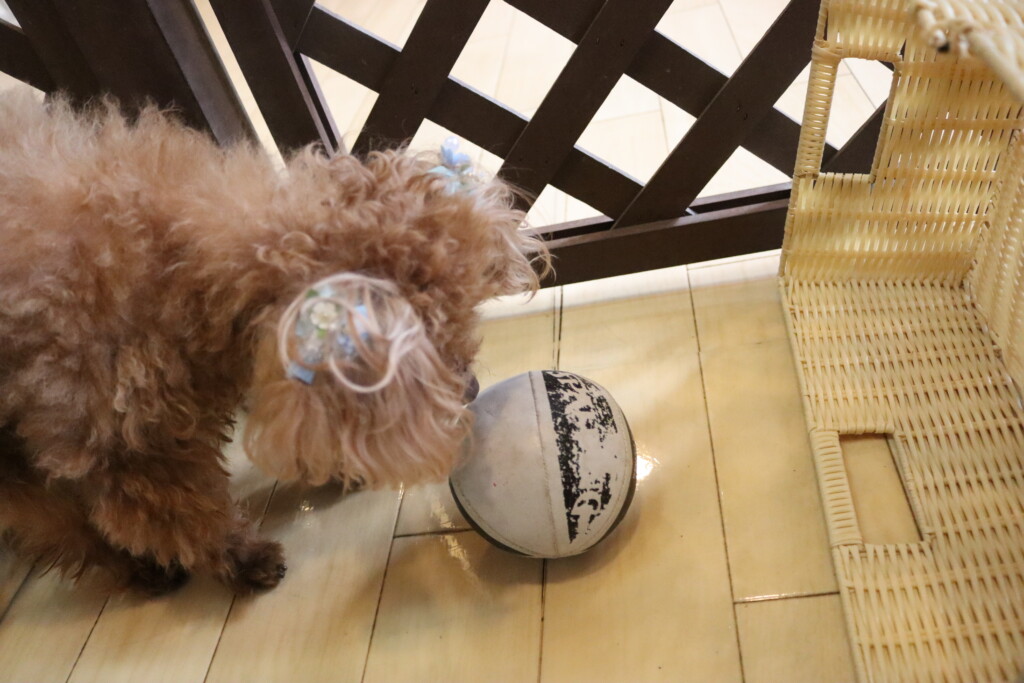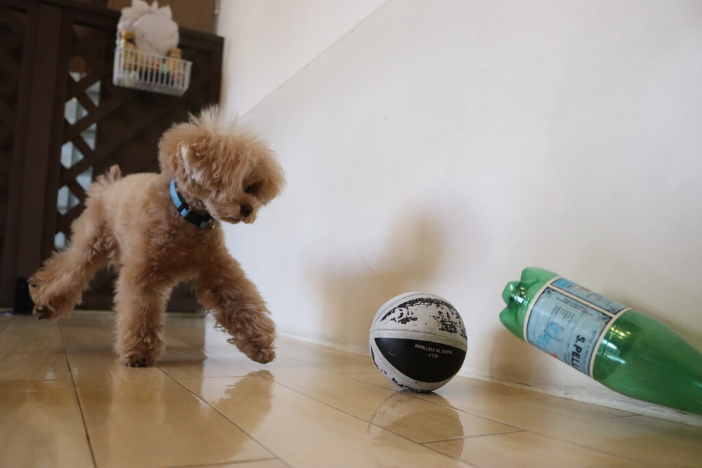 マロンくんは最近、絶好調中のボールシュートの練習!